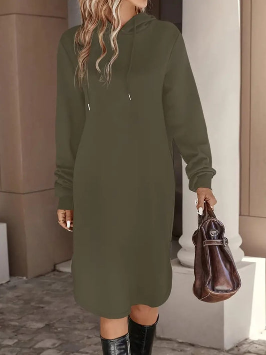 Women's Hooded Long-sleeved Solid Color Dress