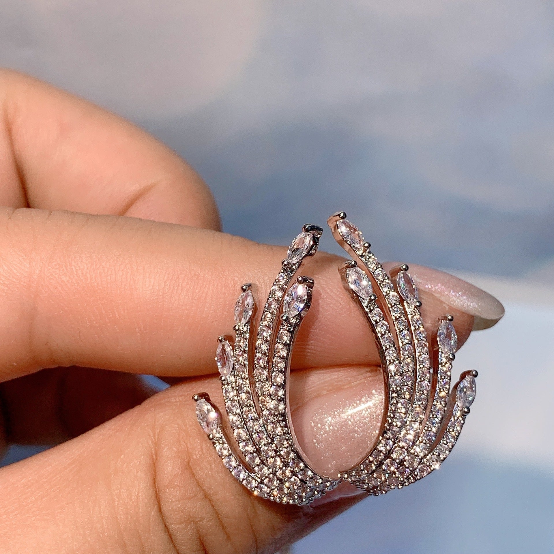 Elegant Angel Wing Inlaid 925 Silver Stud Earrings