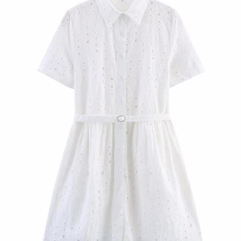 French Style Women's Hollow Embroidered Short Sleeve Dress