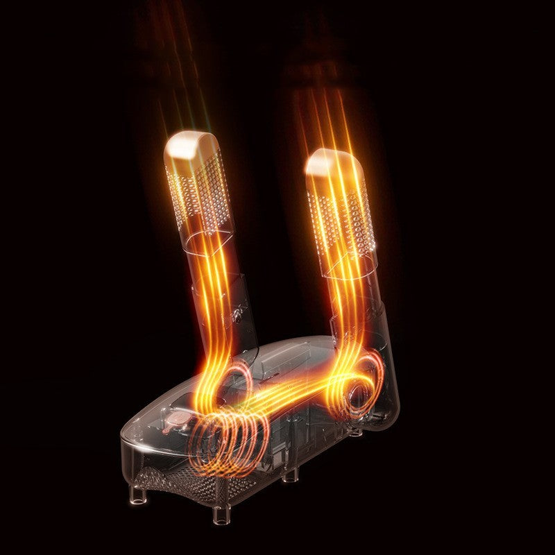 Intelligent heating ensures safe drying without damaging shoe materials.