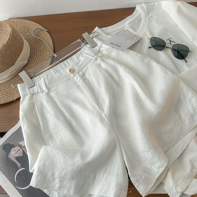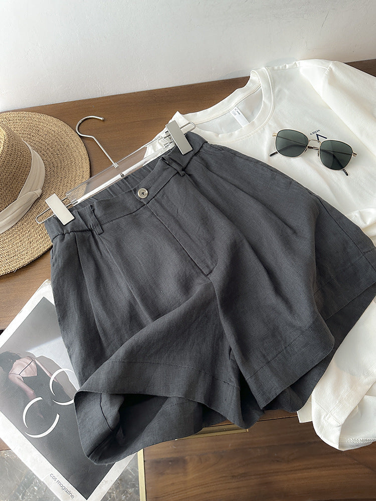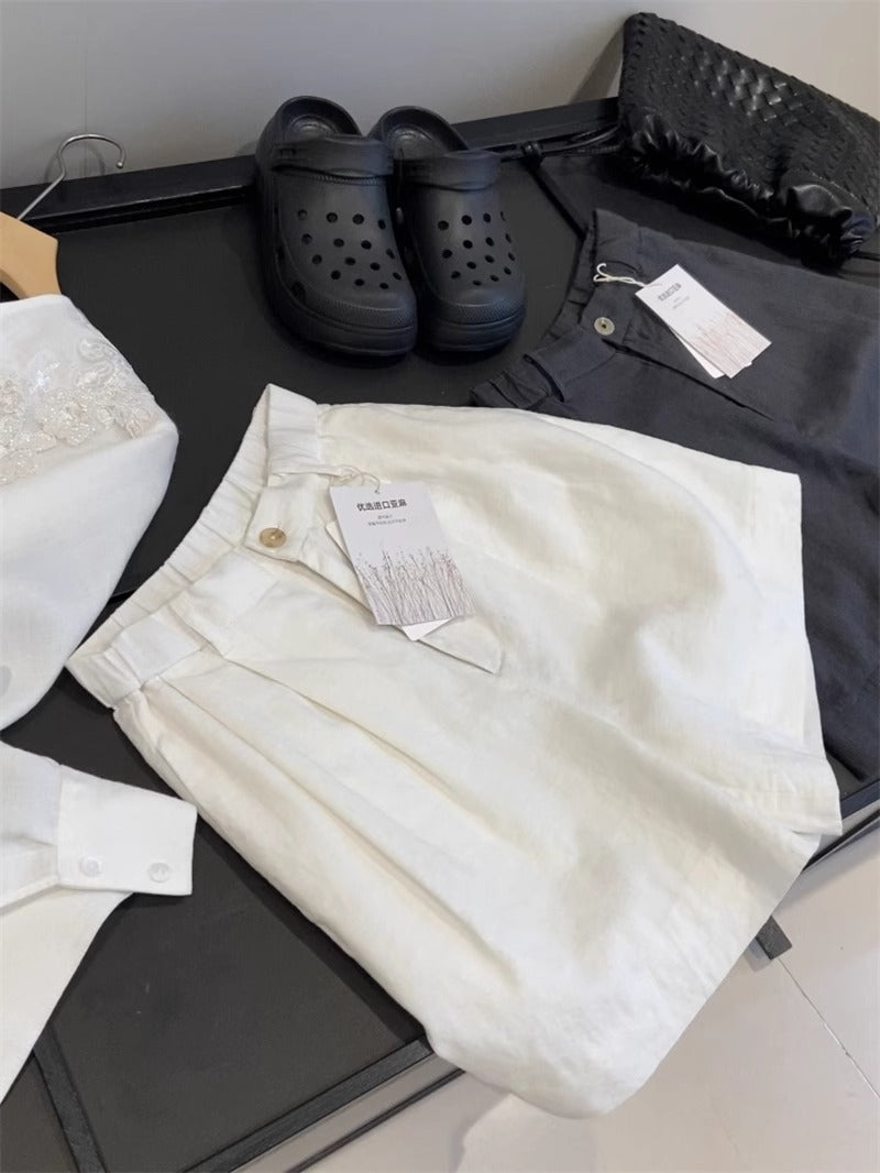 Women's Fashionable Slimming Woven Belt Linen Shorts
