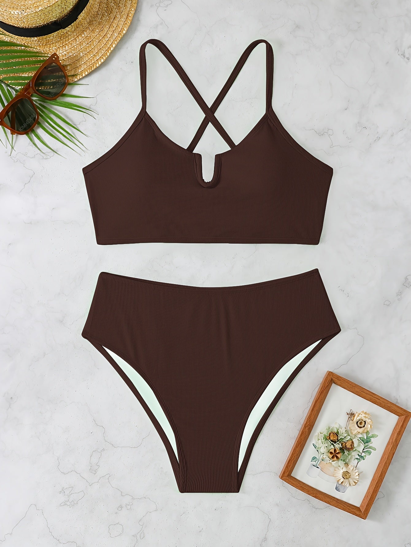 Women's Oversized Solid Color, Exposed Back Lace-up Bikini, Holiday Style Bikini